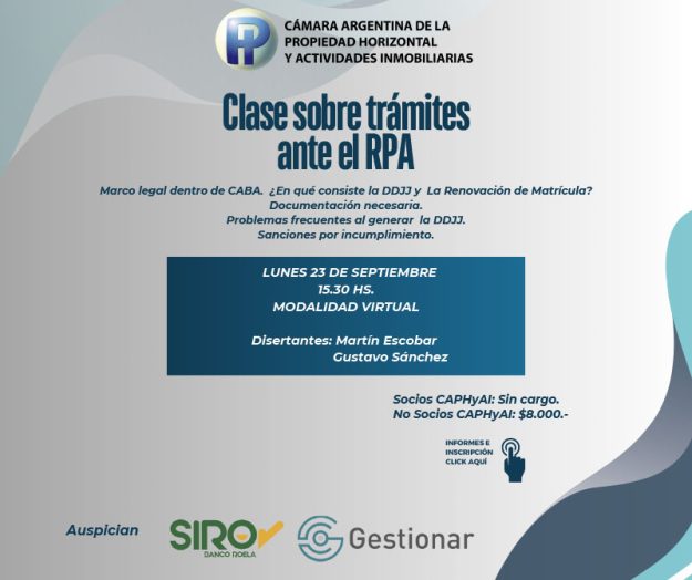 Te invitamos a participar de un nueva Clase sobre trámites ante el RPA.