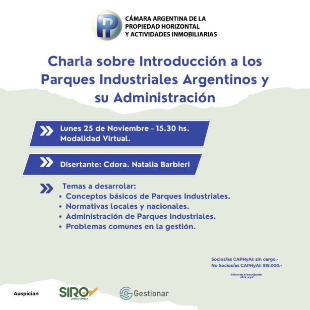 Te invitamos a participar de una nueva Charla sobre Introducción a los Parques Industriales Argentinos y su Administración.