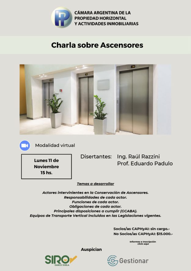 Te invitamos a participar de una nueva Charla sobre Ascensores.