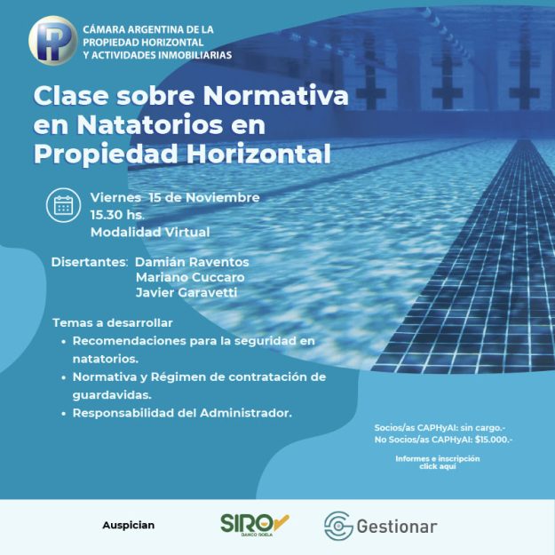 Te invitamos a participar de una nueva Clase sobre Normativa en Natatarios en Propiedad Horizontal.