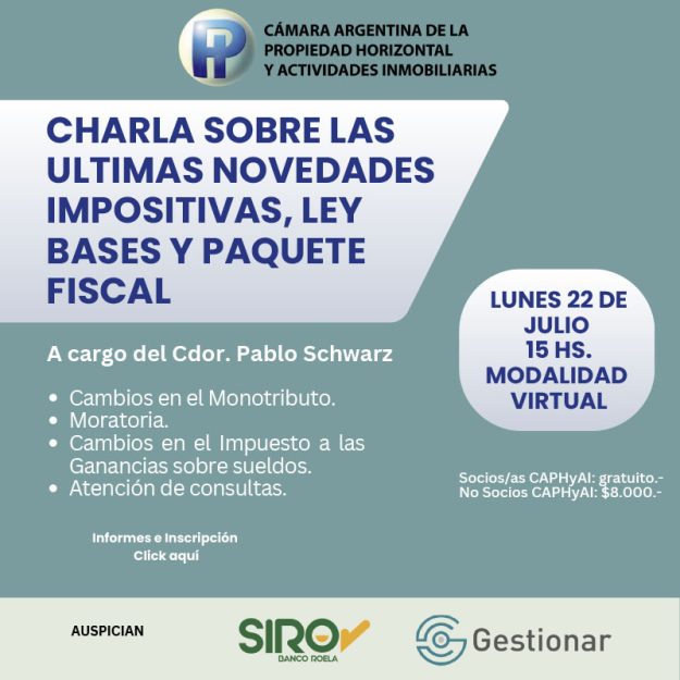 Te invitamos a participar de una nueva Charla sobre ultimas Novedades Impositivas, Ley Bases y Paquete Fiscal.
