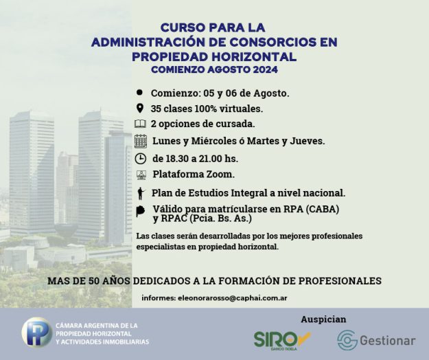 Te invitamos a participar de un nuevo Curso para la Administración de Consorcios en Propiedad Horizontal.