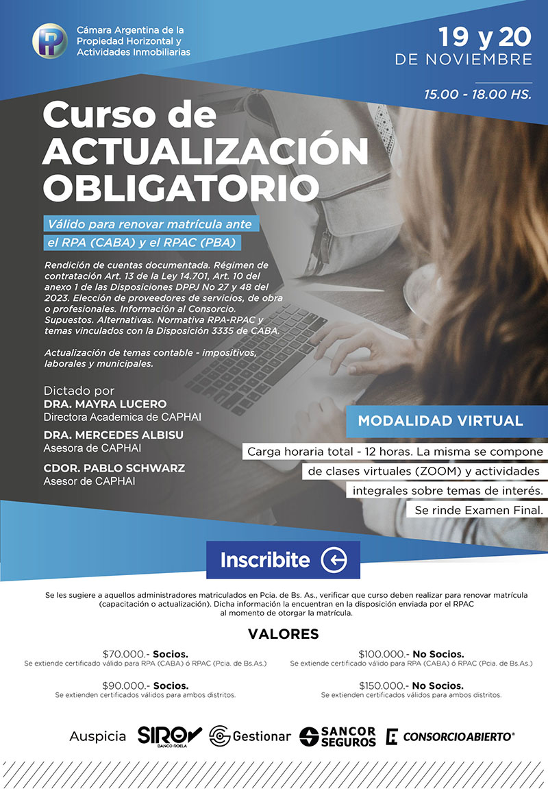 Otras novedadesConsultorio Laboral28 octubre, 2025Consultorio Legal Civil1 octubre, 2025Curso de Actualización Obligatorio26 septiembre, 2025Consultorio Contable Impositivo26 septiembre, 2025Curso de IA en acción para Administradores de Consorcios26 septiembre, 2025Curso de Liquidación de Sueldos y Cargas Sociales12 septiembre, 2025